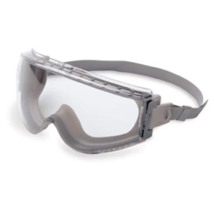 Diseño futurista de bajo perfil resistente a impactos y a salpicaduras de productos químicos. El lente tórico proporciona una óptica superior y una vista periférica. Cinta para la cabeza de ajuste rápido.